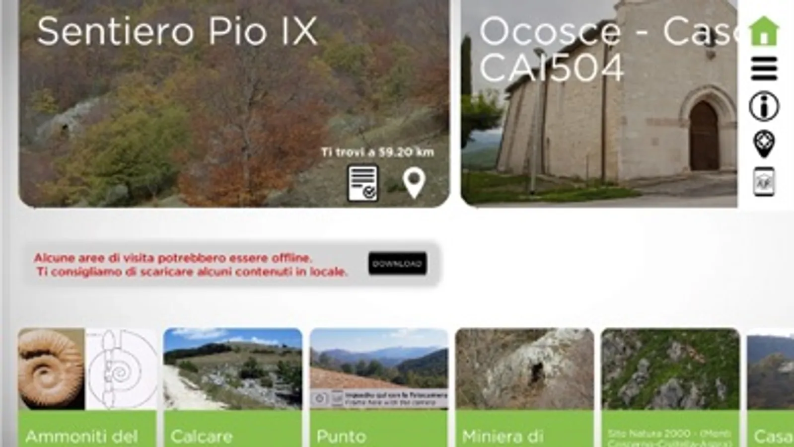 Dopo lo scaricamento della App seleziona la tua lingua e attendi il caricamento dei contenuti multimediali (durerà 1-2 minuti): grazie a questa attesa il sistema recupererà tutti gli elementi di visita di un territorio di circa 60 chilometri quadrati anche senza connessione di rete.