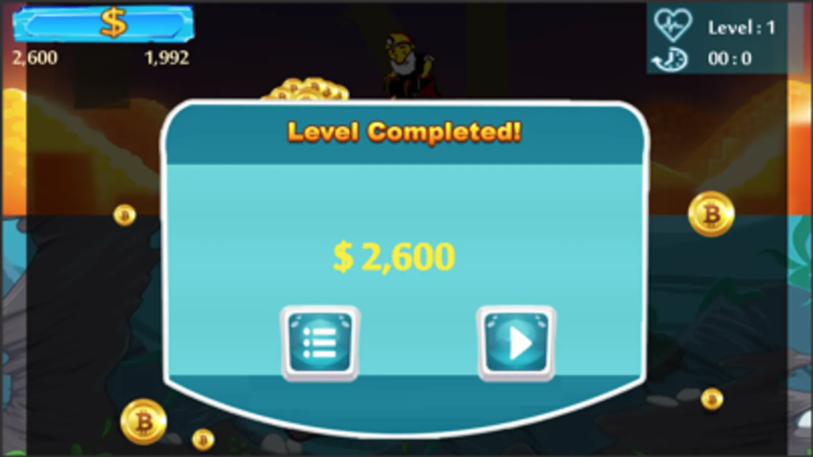 The score of each level reaches the goal, and you will go to the next level. The Mining Crypto Game has a save function, you can start from that level if you exit level.