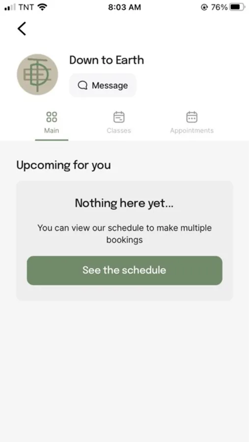 The Down to Earth app makes it very easy for you to manage your Down to Earth account, book into our classes and events, watch our on-demand content, and keep in touch with us. You can easily message us if you have a question or want to share something with them. You can also follow our public feed to see any announcements we make, promos we run, or content we share.
