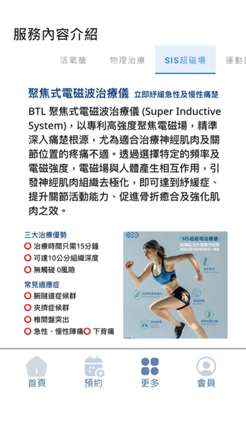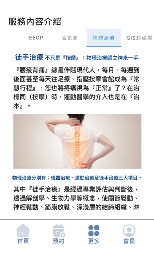 我們提供的服務:EECP體外反搏、SIS疼痛治療、O2活氧艙、徒手物理治療以及私人教練課程。