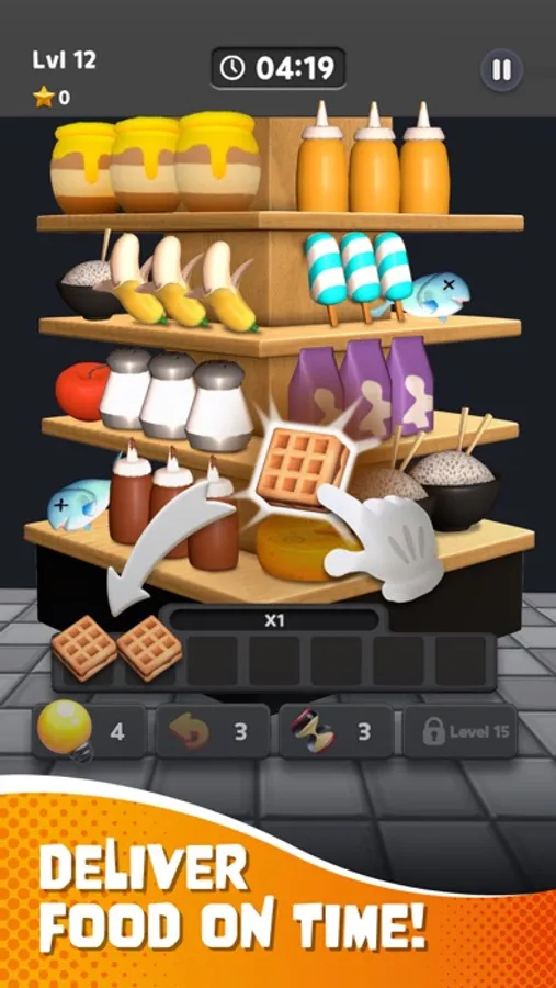 Proudly introduce you to Food Match 3D. Find the foods in the mess, match them all and serve. Unlock new foods and use great boosters to complete the challenging levels on time. Just match and enjoy!
