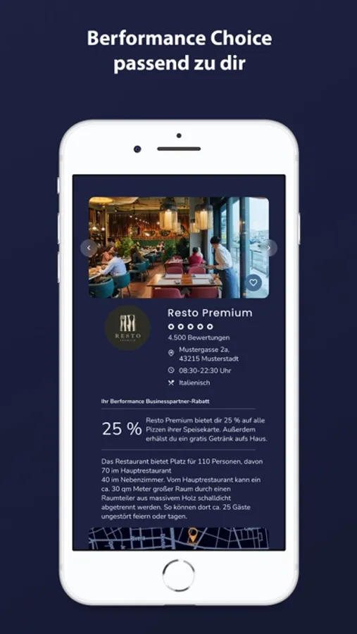 Als unser Freund sicherst du dir mithilfe dieser App alle Vorteile und siehst die Angebote unserer Businesspartner direkt, egal ob Online oder in deiner Nähe bei einem unserer Partner. Hier erwarten dich exklusive Rabatte bei ausgewählten Partnern der Berformance, hierbei ist es egal ob du mit Euro oder auch mit Kryptowährungen bezahlen möchtest, denn unsere Businesspartner geben dir die Möglichkeit in die digitale Welt einzutauchen und diese Welt mit all ihren Vorteilen zu nutzen. Das Praktische ist, egal wo du dich befindest, mithilfe unserer App kannst du nach dem besten Deal filtern oder dich dank der Routenplanungs-Software direkt zu deinen besten Rabatten bei dir um die Ecke navigieren lassen. Das macht richtig Freude, und wie du ja weißt “Beim Geld fängt die Freundschaft an!” - Lass uns loslegen!