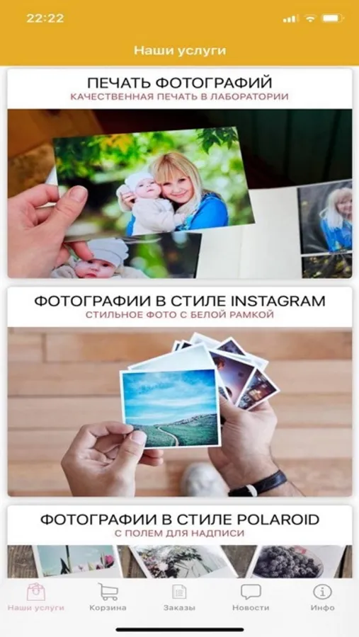 Приложение для удобной печати фотографий, фотокарточек инстаграм и фотокарточек полароид со смартфонов Iphone