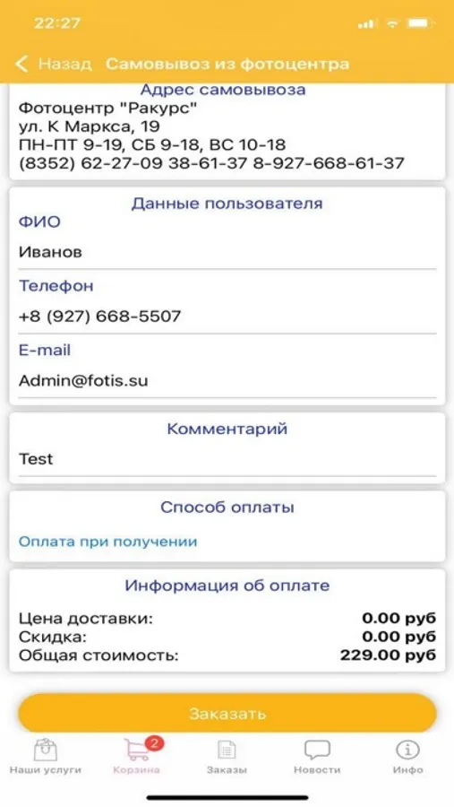 - Получите и оплатите в фотоцентре или с курьером готовый заказ