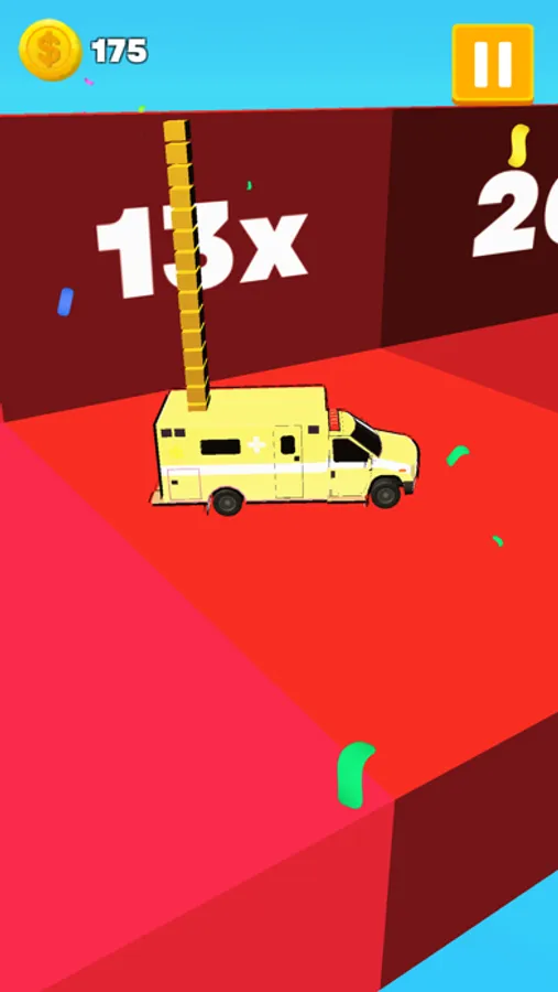 Once you've built the last bridge and crossed the finish line, the more stacks you have left, the higher the ramp and the further you fly. You get 20 times more coins when you fly up to the block 20x.