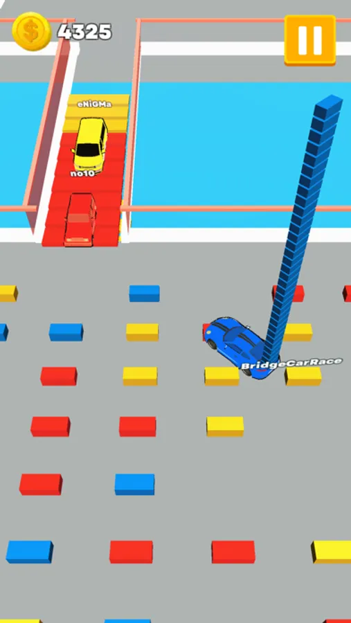 Collect the stacks of your own color, build the bridges between platforms, be fast to pass the other racing cars and win the game.