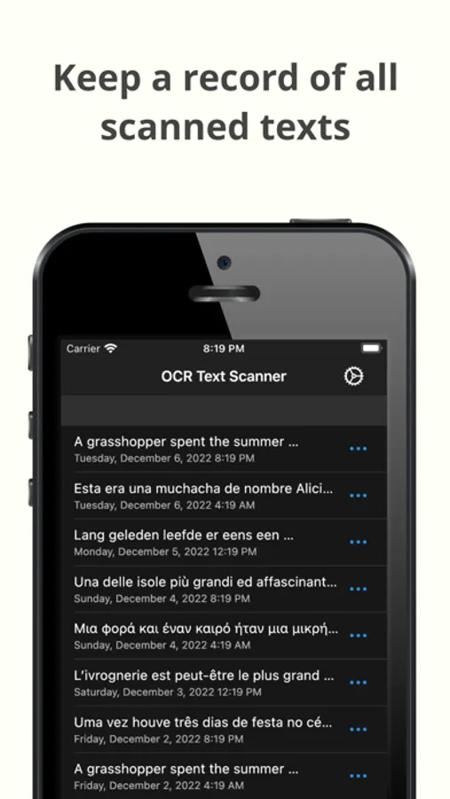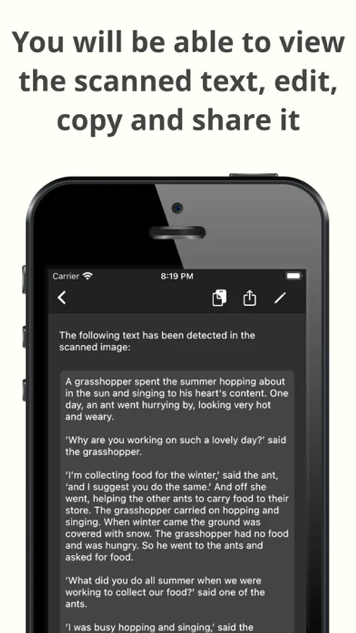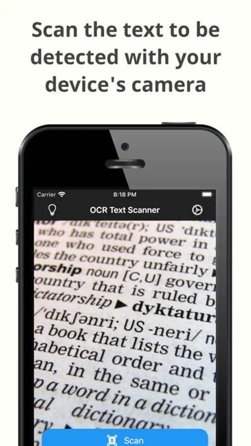 OCR Text Scanner allows you to scan any text from the physical world with your device's camera and convert it to digital format quickly and easily.