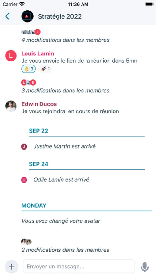 Grâce à une prise en main simple vos collaborateurs gèrent leurs projets avec des groupes de discussion dédiés, et peuvent échanger directement des messages et des fichiers.