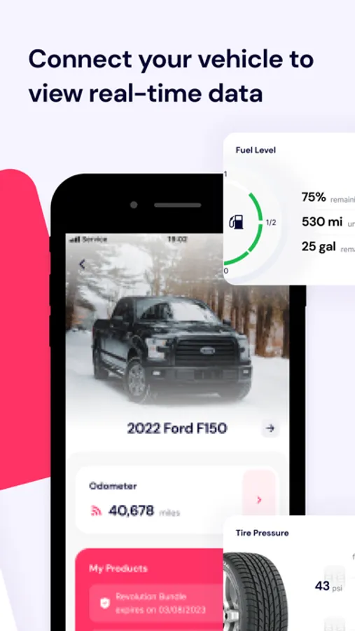 Maintain your vehicle’s health by tracking your odometer, fuel level, tire pressure or charging status in real time.