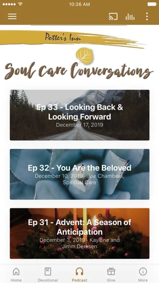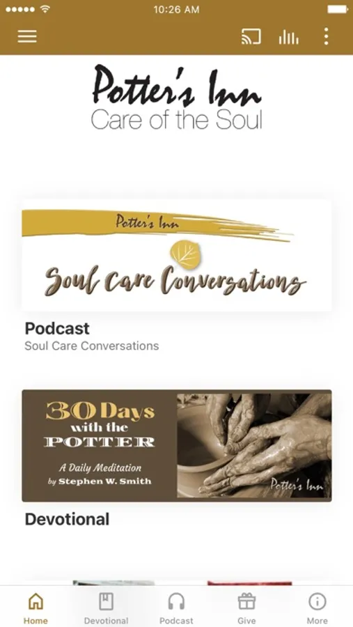 The Potter's Inn App provides you with resources that are essential to your soul care and spiritual direction journey. With this app you can use our "30 Days with the Potter" devotional; listen to our weekly podcast; stay up to date with push notifications; share your favorite resources via Twitter, Facebook, or email; make your tax deductible gift to Potter's Inn; and read Steve's personal blog.