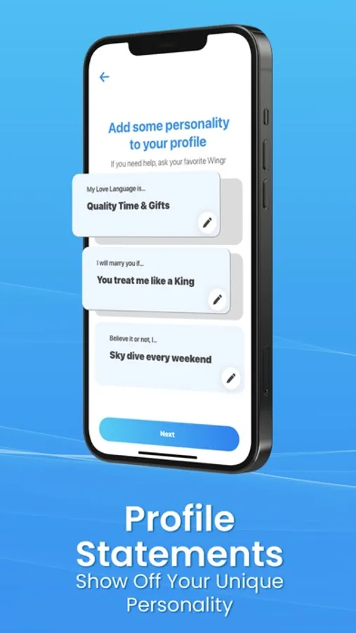 Use Personality Statements to show off your unique personality while also getting a glimpse at a potential matches personality.