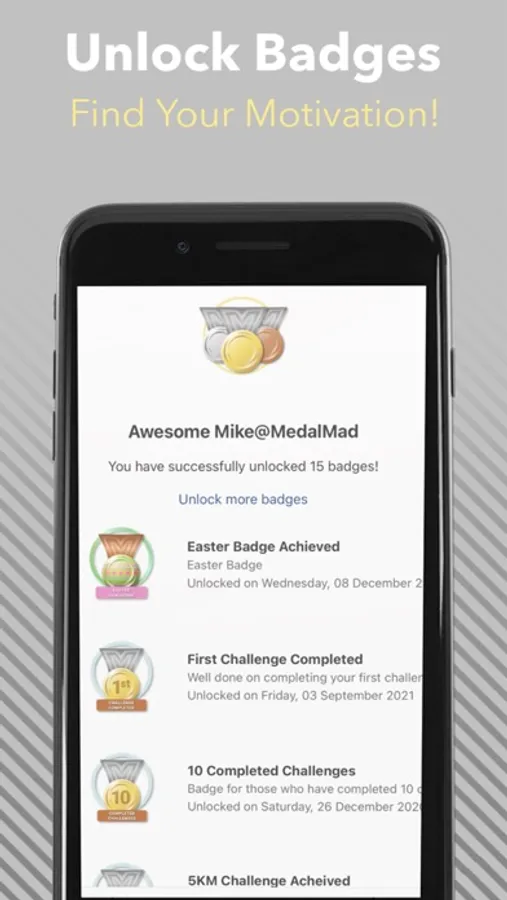 Use the MedalMad app to track your challenges, receive support, tracks friends progress and much more.