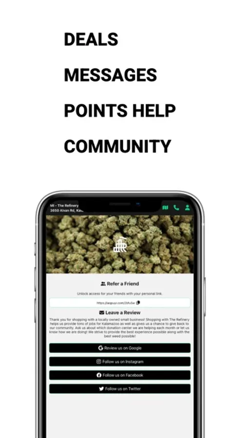 Your Plugs Favorite App. Quickest and easiest way for you to meet your Cannabis needs! Welcome to The Refinery App! Order, contact us, visit our website, and even view your reward points through the app. Sick of our texts not coming through? Now you can receive notifications about the store, plus all of our latest and exclusive drops, instantly!