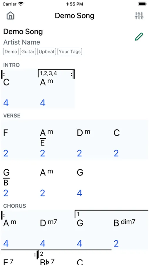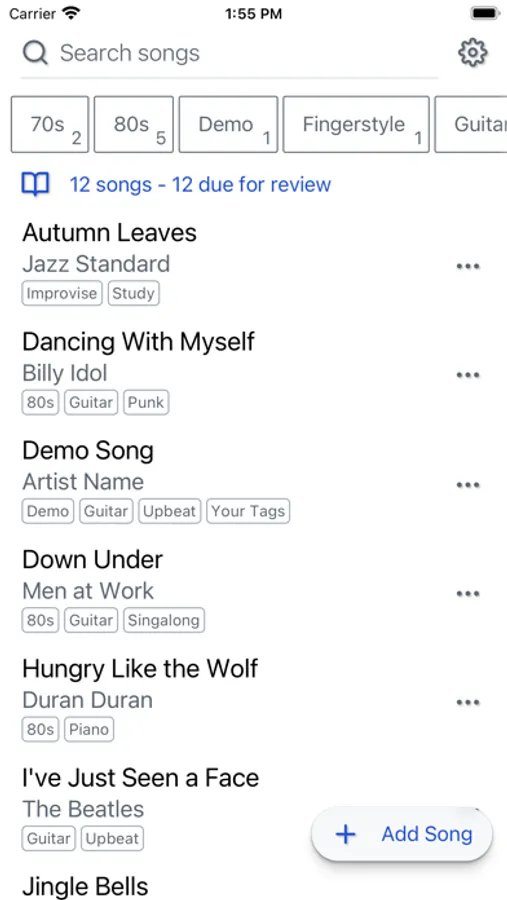 * Use tags to organize your songs or create a set list.