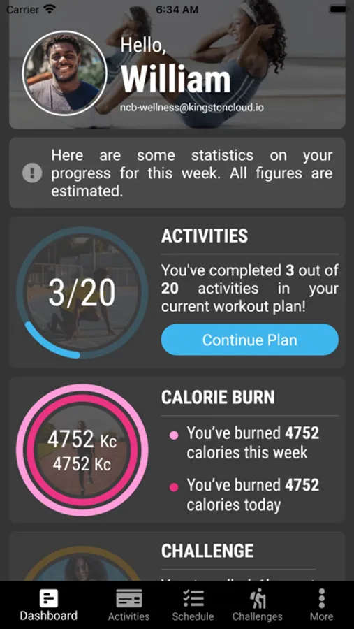 The NCB Wellness app allows employees to view weekly workout plans ranging from beginner to advanced and participate in monthly running/walking challenges.
