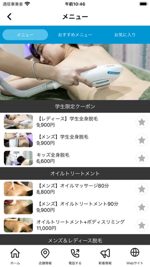 気になるサロンメニューや価格をアプリから簡単にご確認いただけます。