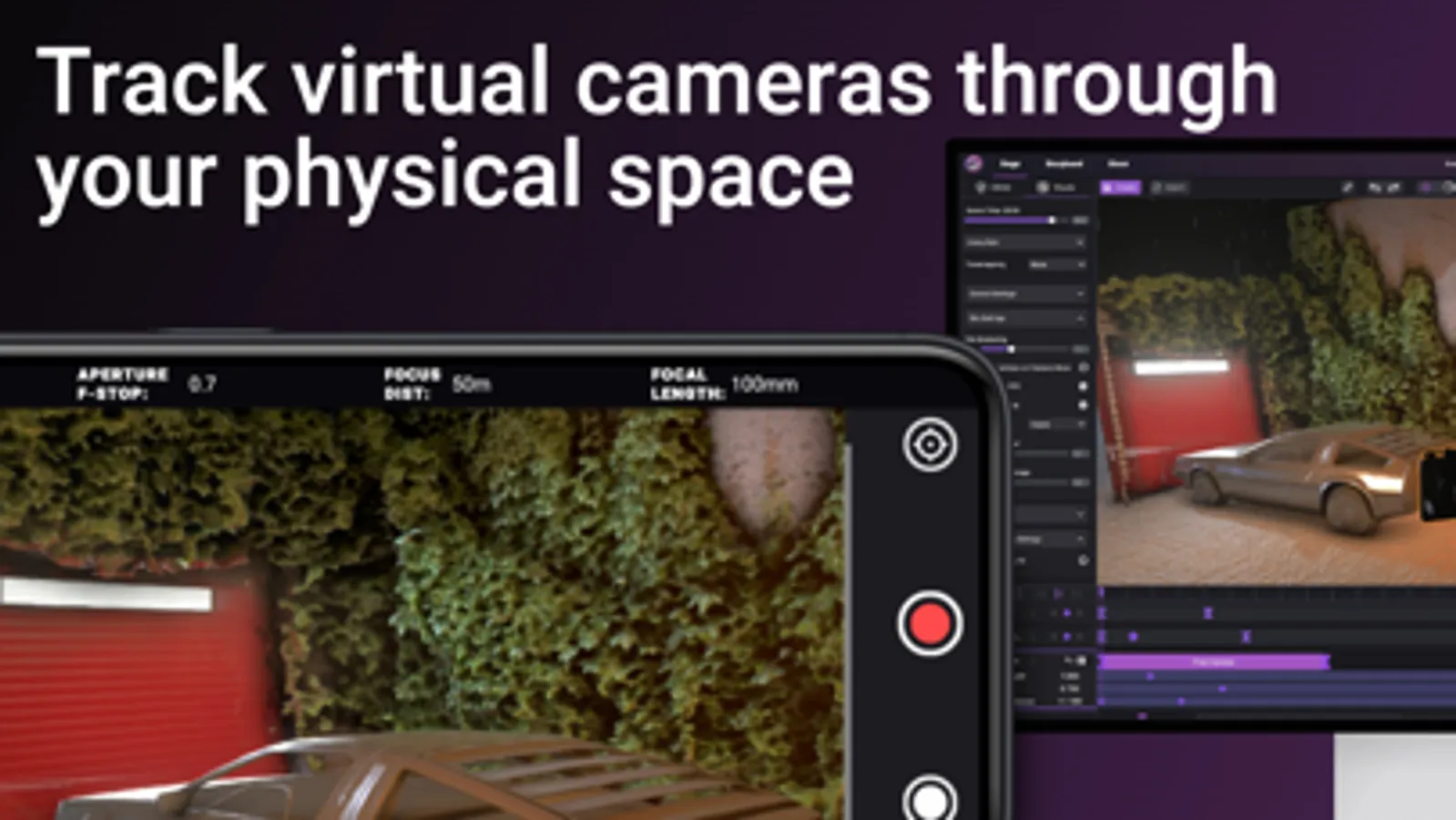 The Virtual Camera feature lets you accurately track cameras in your 3D space. Use it for realistic "handicam" film pre-vis or for tracking your physical cameras for live compositing.