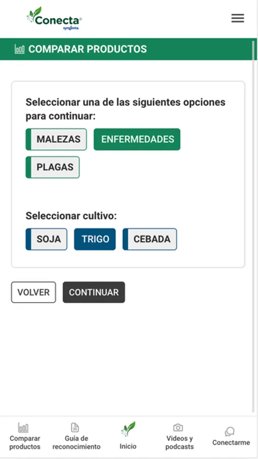 Bienvenido a la aplicación Conecta de Syngenta. Resultados de ensayos, videos y podcasts, guía digital de reconocimiento, consultas técnicas, y mucho más. Te invitamos a conocerla.