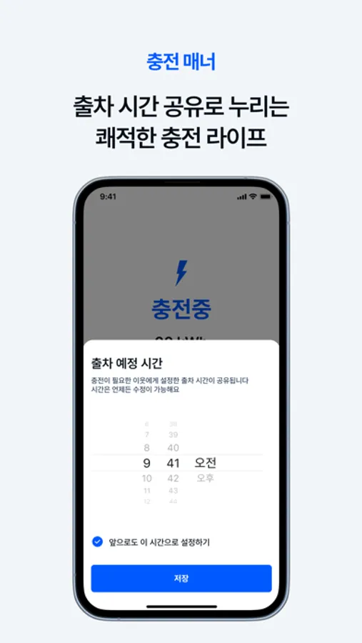충전중인 차량의 출차 시간을 이웃과 공유하고