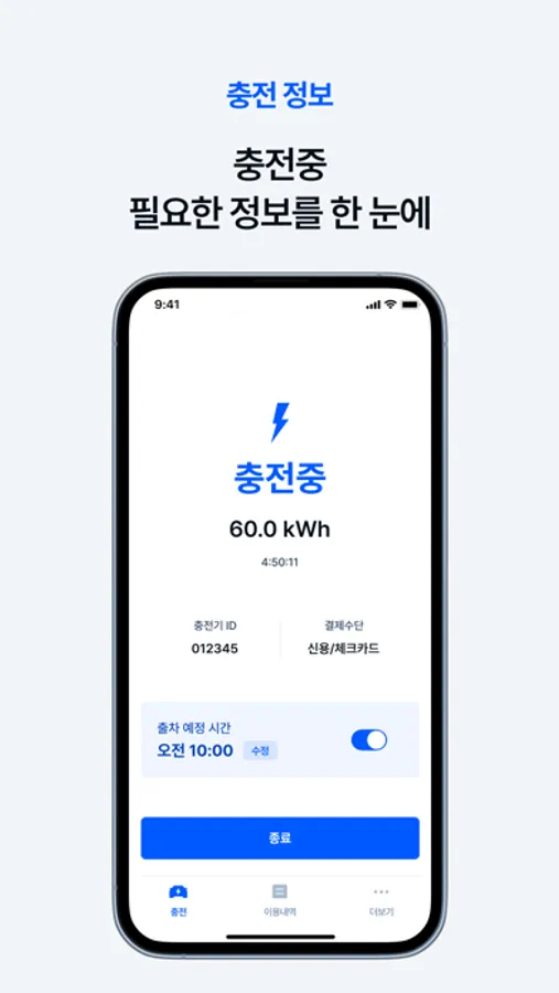 충전하는 중에도 결제될 카드 정보부터 충전 상태, 충전시간, 충전량 등을 볼 수 있어요.
