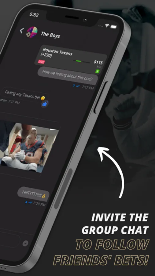 Seamlessly add friends or your existing sports betting group chat to follow their bets, compare stats, compete in leaderboards, and talk smack in the first-of-its-kind group chat specifically tailored for sports bettors. Will you tail or fade?