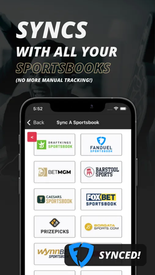 Vault syncs with your sportsbooks and tracks your bets automatically; no manual entry! Vault Sports uses book sync technology to link with all of your sportsbooks to automatically track your bets, stats, trends, grades, money, bankroll, streaks, and where you’re most profitable. The Vault Sports app syncs with FanDuel Sportsbook, DraftKings, PointsBet, BetMGM, Barstool Sportsbook, Caesars Sportsbook, FoxBet, Borgata, WynnBet, PrizePicks, Underdog Fantasy, BetRivers, Prophet Exchange, SugarHouse, and Thrive Fantasy. Take your betting game to the next level!