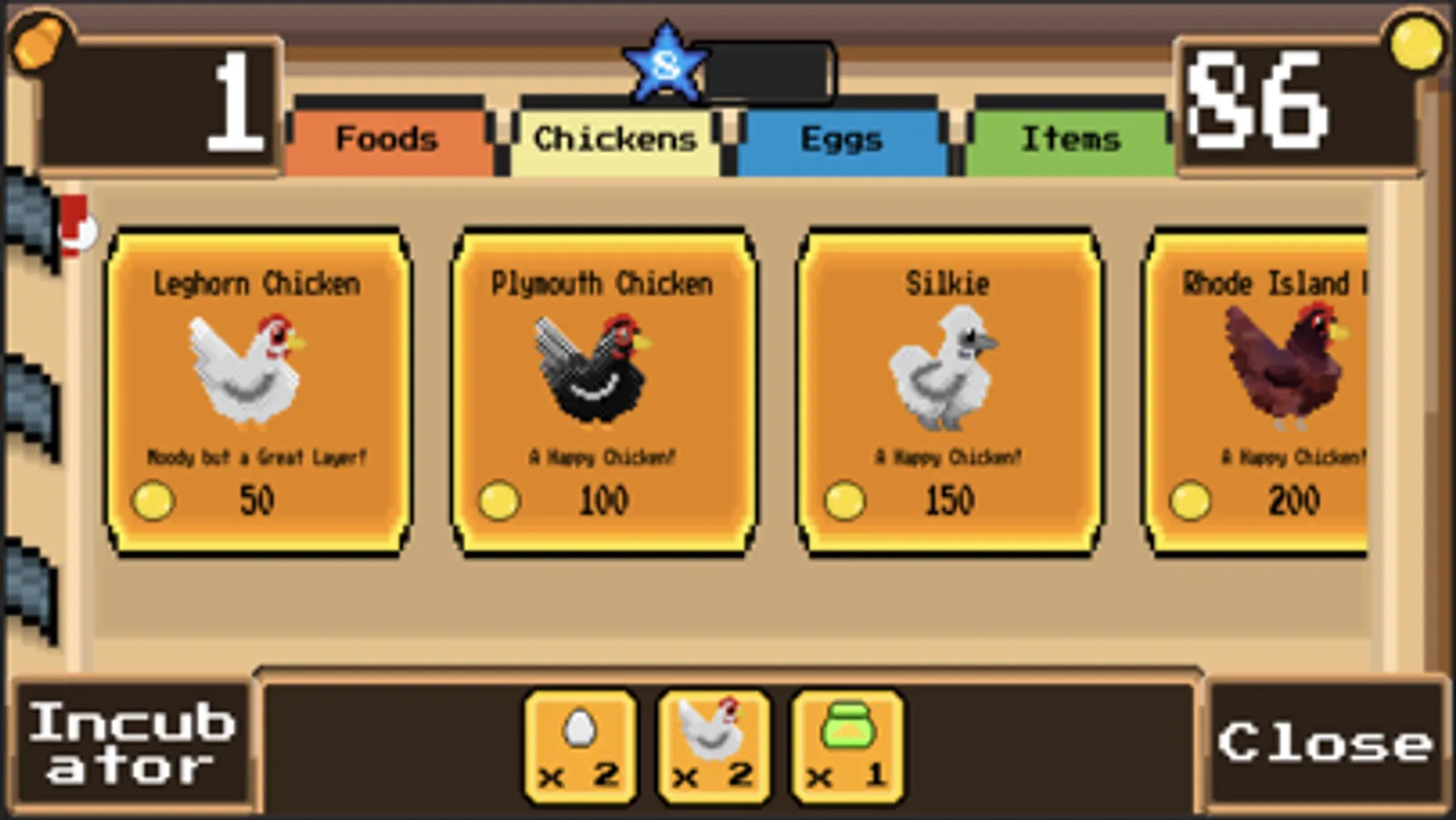 Coop! is a fun game where you collect, raise, and care for chickens! Incubate eggs to raise a variety of chickens. Meet and do tasks for your neighbors. Buy and sell chickens, eggs, and food to make your best coop!