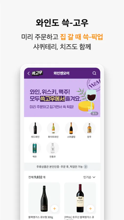와인이 필요할 땐 결제 후 픽업하세요! 쓱고우는 배달도, 픽업도 모두 가능!