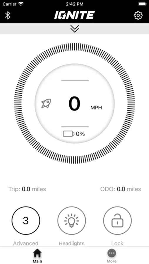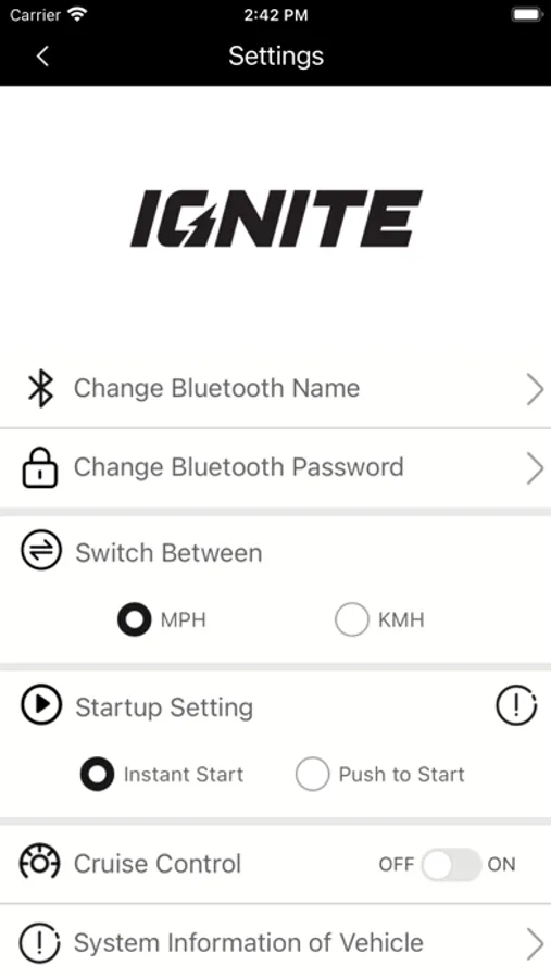 2. Through Bluetooth connection to the IGNITE Scooter, the App can show the vehicle's power, speed, TRIP, ODO and so on.