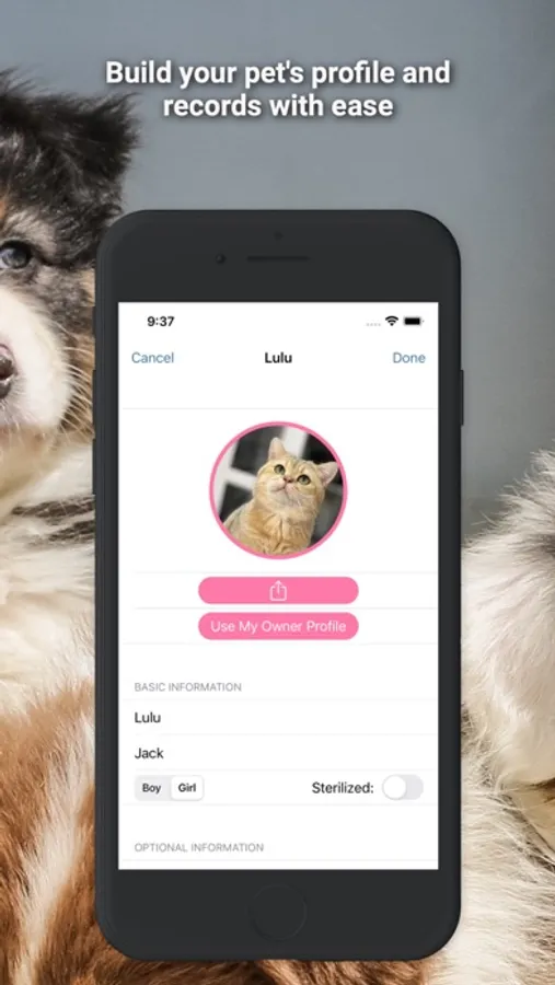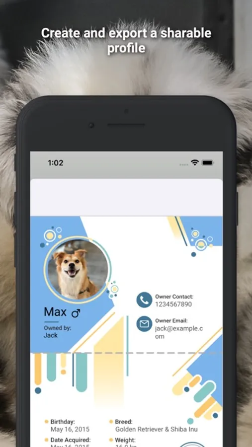 - Share your pet profile with friends, families, and pet caretakers with a single click.