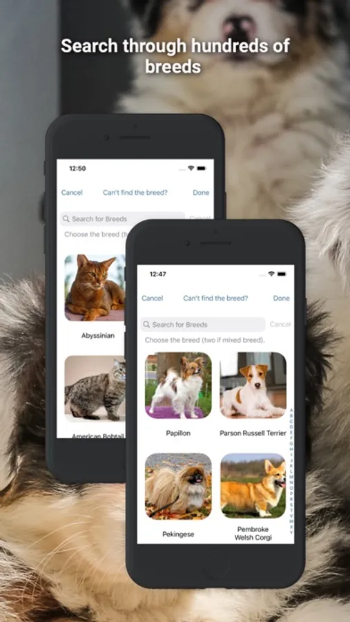 - Create an individual document for each of your pets, provided with hundreds of breeds.