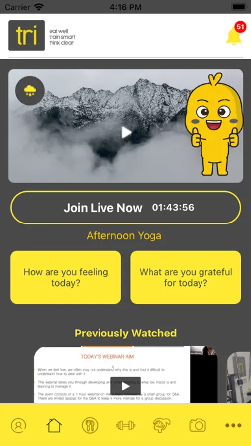 - Your very own virtual wellbeing coach ‘Trioki’. They will motivate you and keep you on track. Their wellbeing is reflection on how much time you spend on your own.