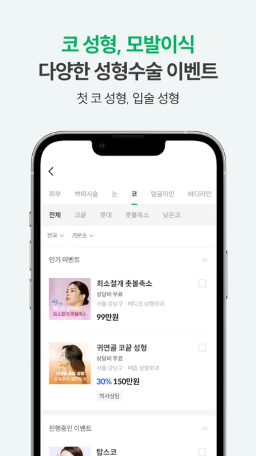 [성형외과 이벤트] 첫 코 성형, 모발이식까지 다양한 성형수술 이벤트