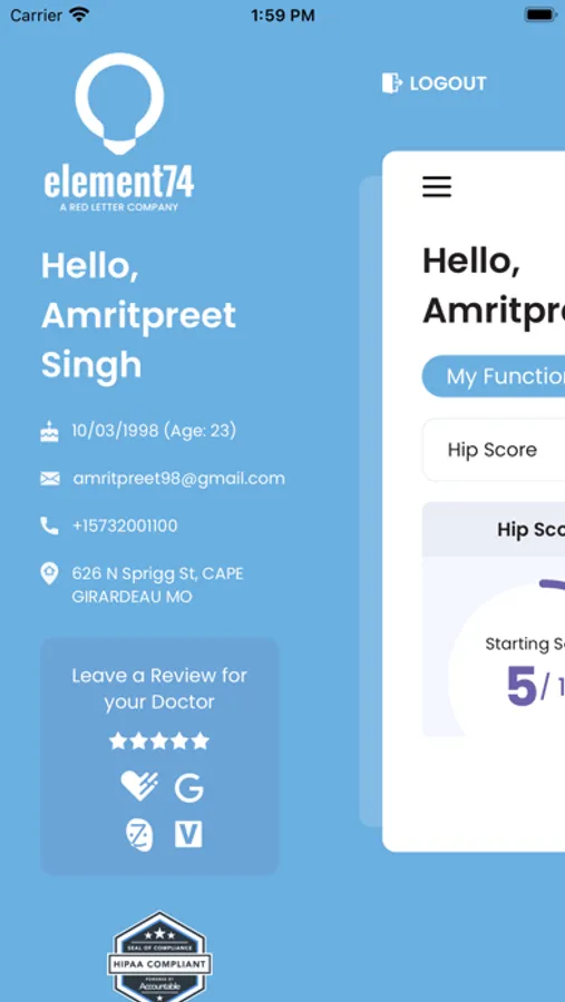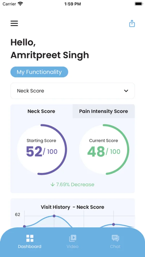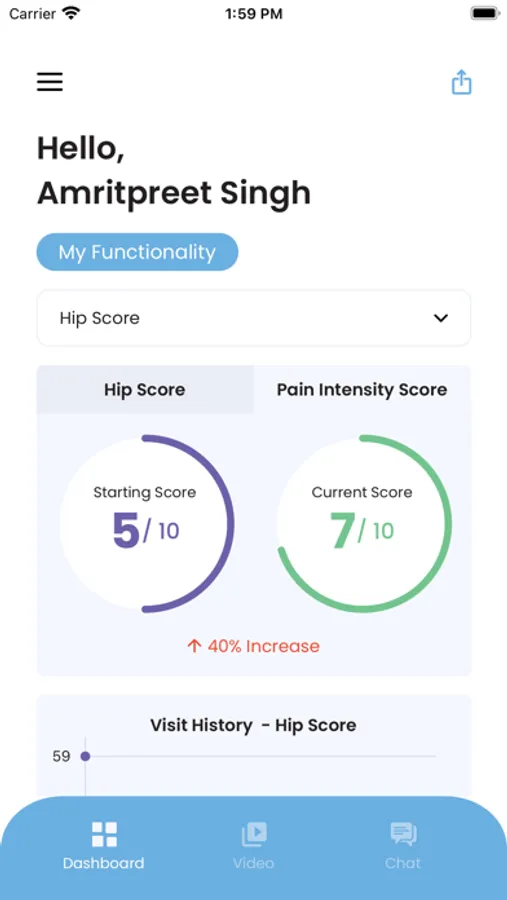 - Track your pain and function score over time