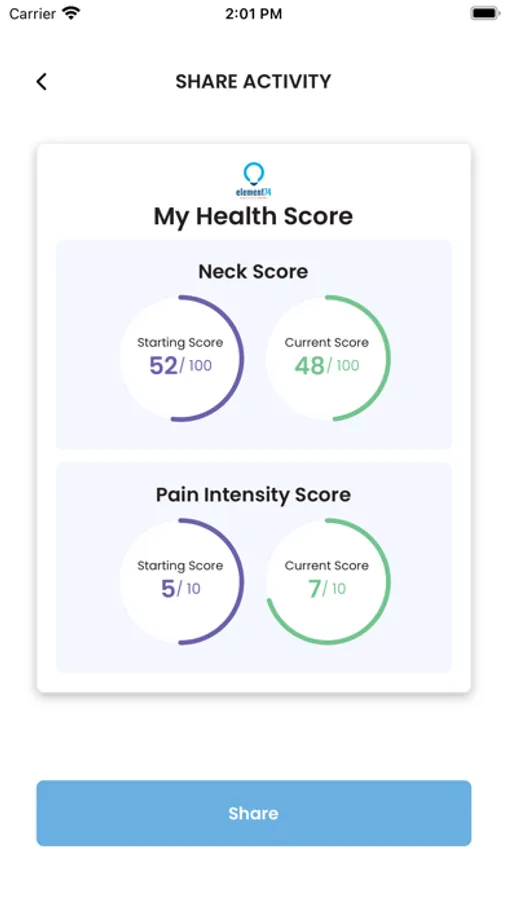 - Share your outcomes with friends via text or social media