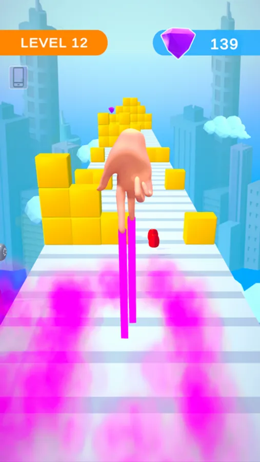 High Nails is a 3D platform runner game where you collect nail pieces and get taller in order to pass over tall structures without crash. Use swipe controls to steer your hand through narrow paths and avoid any accidents. In the end, you'll surf on nail filing surface. The further you get means more & more diamonds. Hooray!