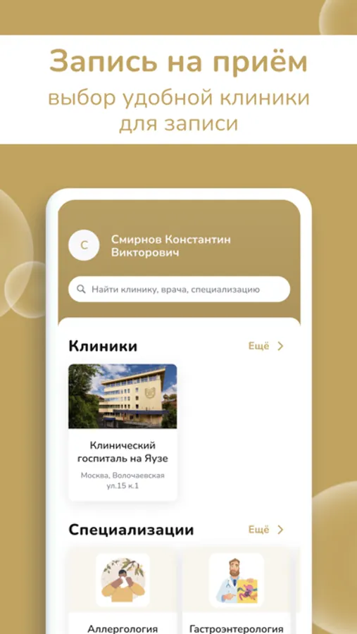 Приложение предоставляет разнообразные возможности самостоятельной записи пациента на прием, просмотра и печати пациентом списка запланированных посещений, результатов анализов и рекомендаций врача.
