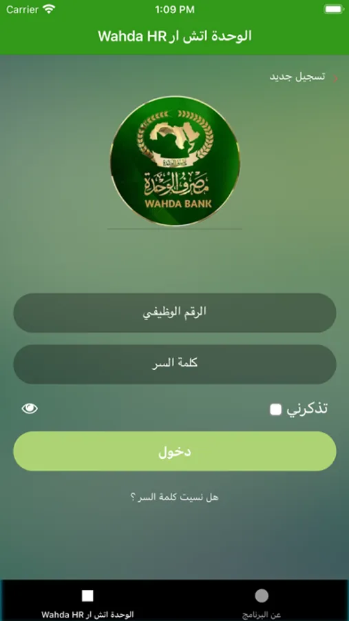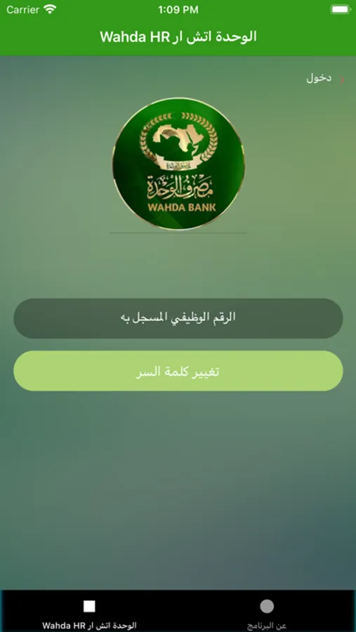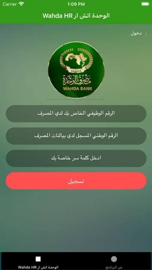 هذا البرنامج لايستعمل الا من طرف موظفي مصرف الوحدة للوصول الى معلوماتهم الوظيفية والتفاعل مع اداراة الموارد البشرية