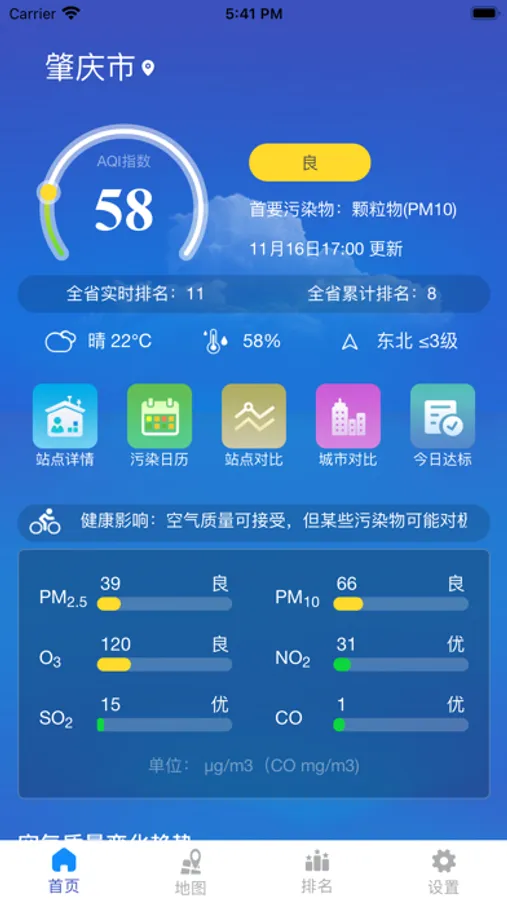— 排名:可查看肇庆市空气质量排名情况