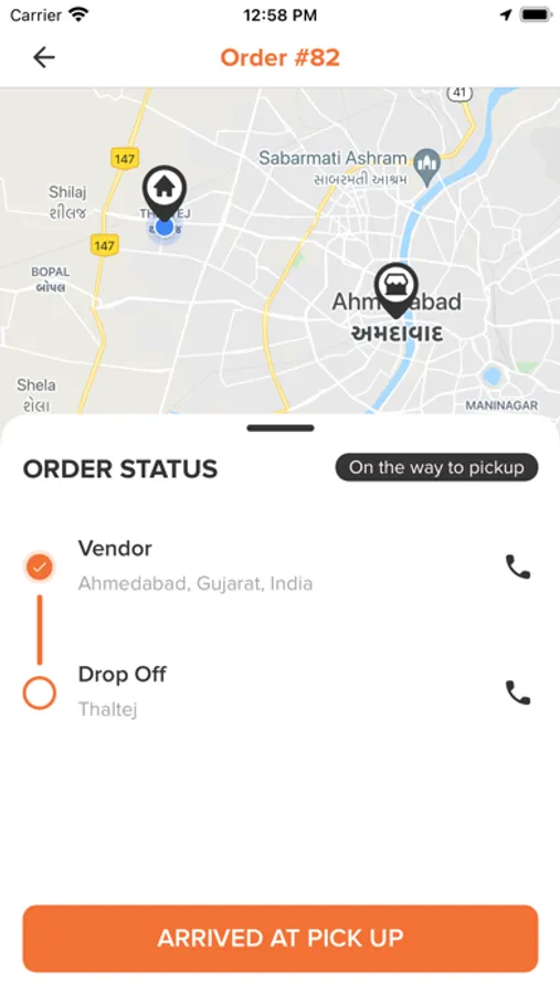- Change order status like (Order Picked Up, On The Way, Order Arrived, Order Delivered)