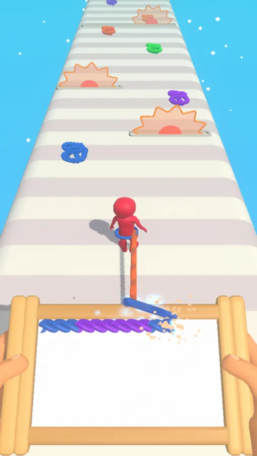 Pick up the ropes and finish the level. Watch out for the obstacles, break the ropes!