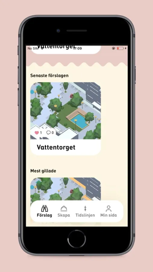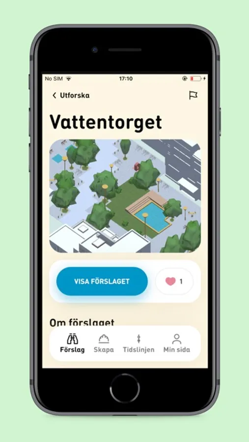 Bästa upplevelse ger appen om du är på plats i Drottninghög och kan se förslagen i skala 1:1 på platsen där torget kommer att ligga. Men om du inte har möjlighet att ta dig till Drottninghög så kan du instället titta på, kommentera och skapa förslag i AR på valfri plats, eller i en förenklad vy i din mobil.