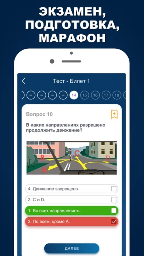 ► Режим марафона - прохождение тестирования по всем вопросам или определенной части вопросов.