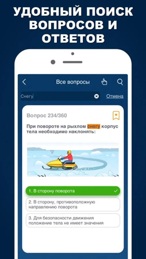 ► Поиск по номеру вопроса или по тексту вопроса в режиме Обучения.