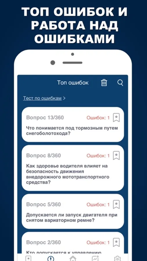 ► Работа над ошибками - тестирование по всем вопросам, в которых были допущены ошибки.