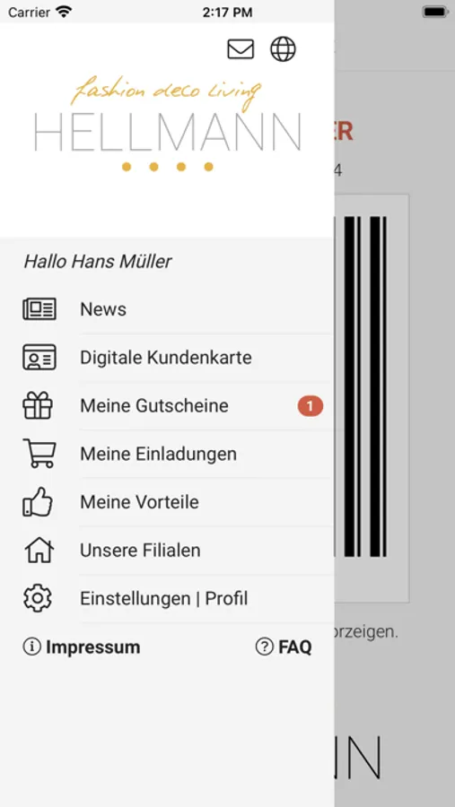 1. Ein Muss für alle Mode-Fans: Mit der Hellmann App haben Sie alle Vorteile als Hellmann Kunde und Ihre digitale Kundenkarte immer auf Ihrem Smartphone dabei.