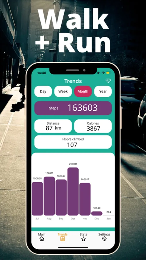 - Goals, insights & trends of your step history