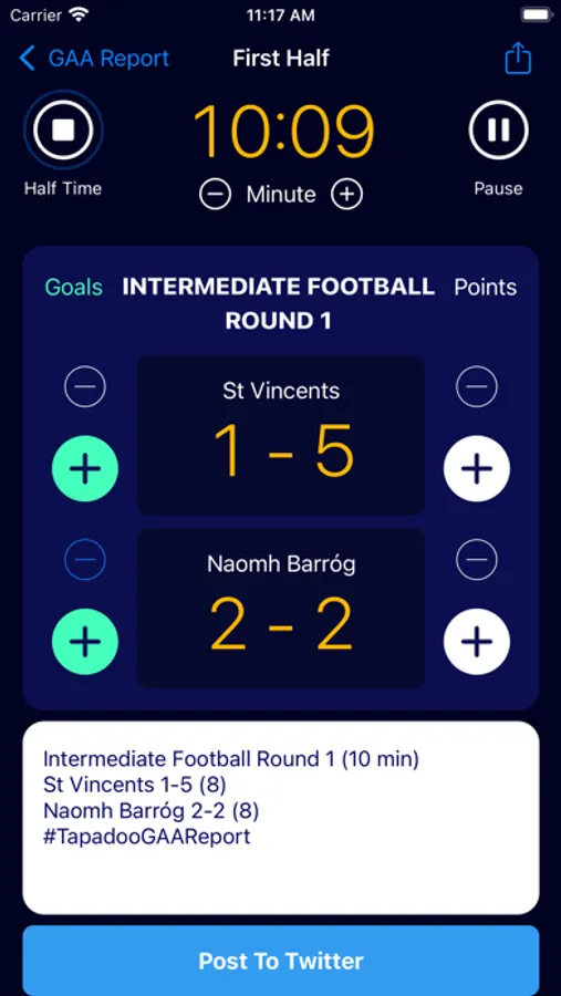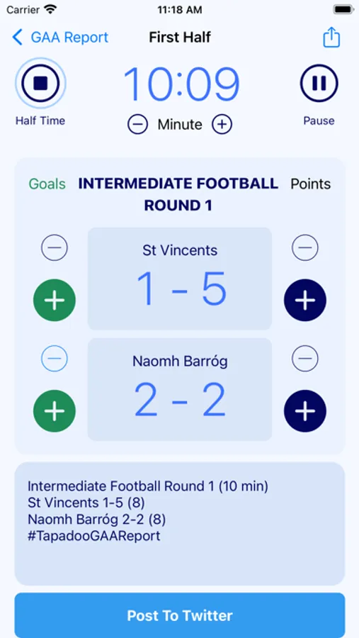 It can be used to record scores, post play by play updates to twitter, and has a handy feature for sharing current scores to friends and family across messaging and social media apps.