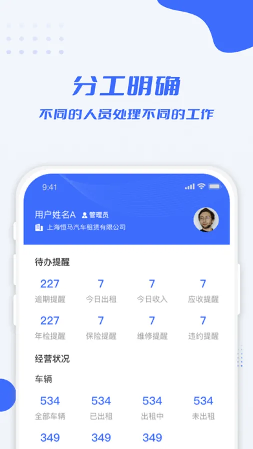收租提醒/一键收租/一键催租/车辆管理/销售管理/财务管理/出车提醒/员工管理