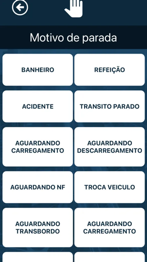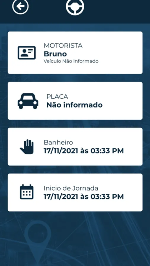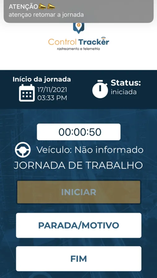 Aplicativo para interação do motorista com central de monitoramento para controle de jornada e limite de tempo em condução.